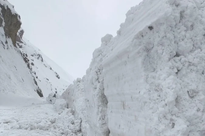 Van-Hakkari kara yolu Güzeldere Tüneli çıkışı Kırmızıtaş mevkiinde, yamaçtan kopan kar kütlesi kara yoluna indi.