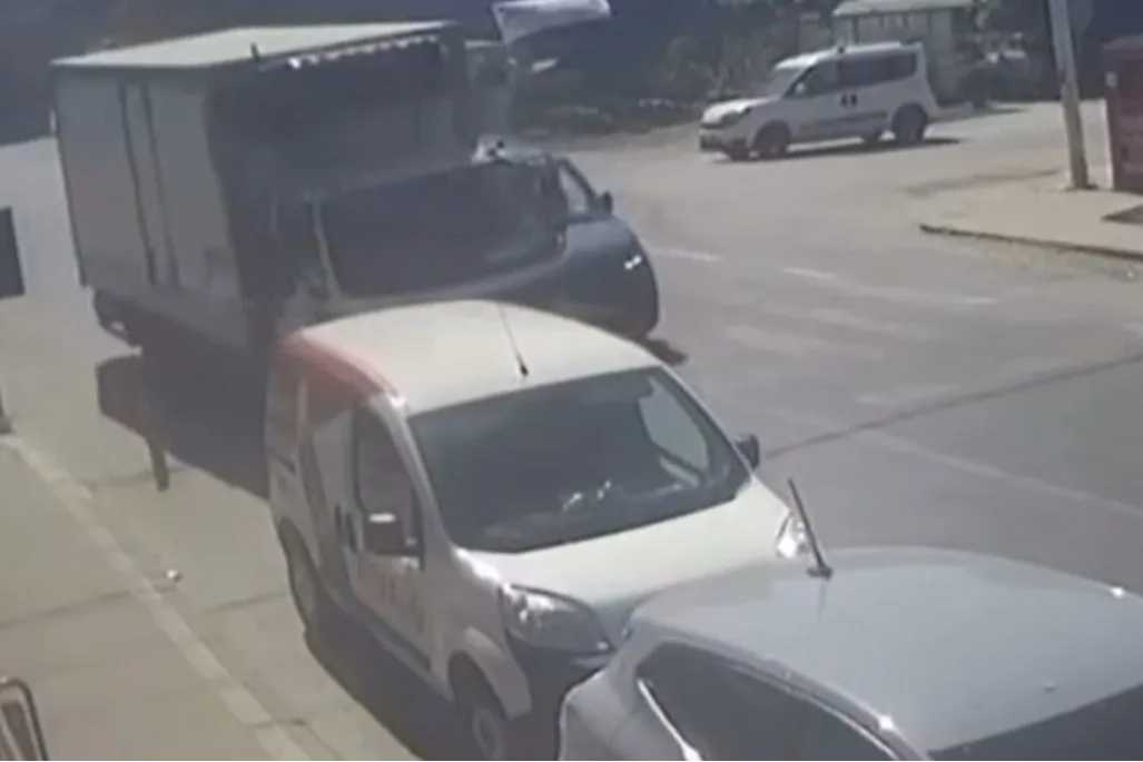 Kaza anı bir iş yerinin güvenlik kameralarınca kaydedildi.