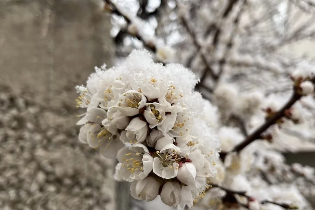 Kar nedeniyle evlerin çatıları ile araçların üzeri beyaz örtüyle kaplanırken, çiçek açan meyve ağaçları da kar altında kaldı.