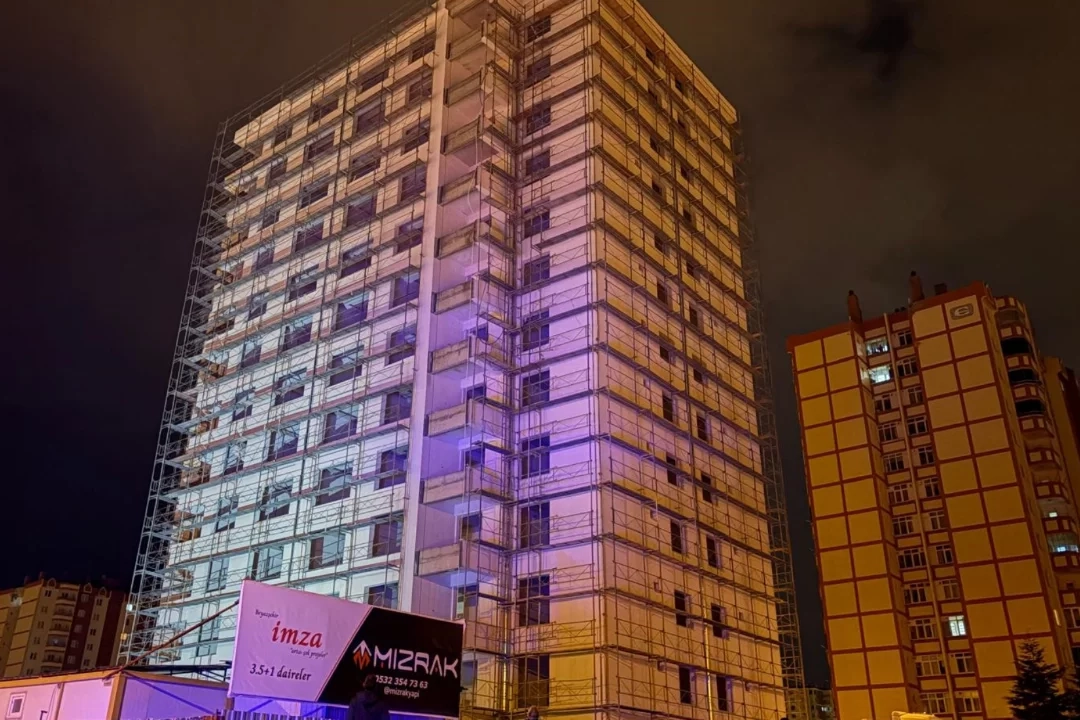 İhbar üzerine bölgeye polis, itfaiye ekipleri sevk edildi. Polis ekipleri çevrede güvenlik önlemi alırken, itfaiye ekipleri de inşaatın yanına şişme yatak açtı.