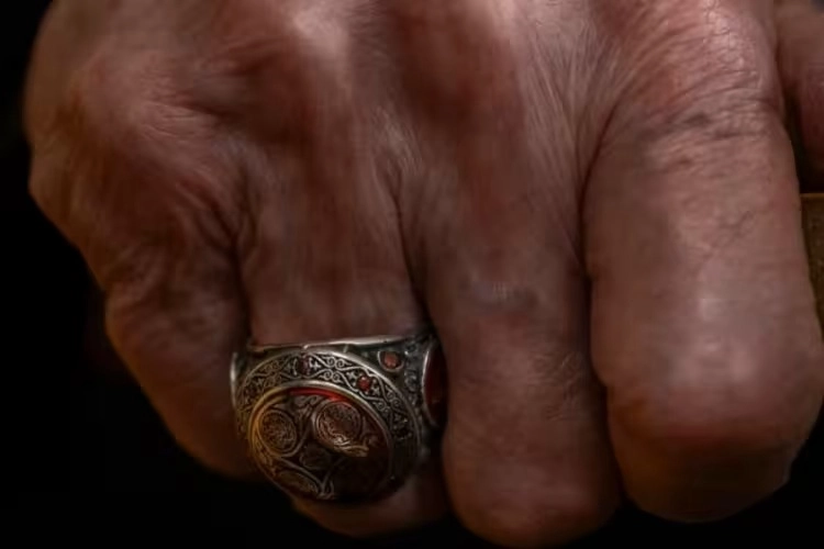 Bahçeli'nin taktığı yüzük de rozetle aynı anlayış ve formda hazırlandı. Dairesel yapıya sahip yüzüğün merkezinde yine Fettahoğulları aile mührü bulunurken, çevresinde hat sanatıyla yazılmış Besmele ve sureler yer aldı.