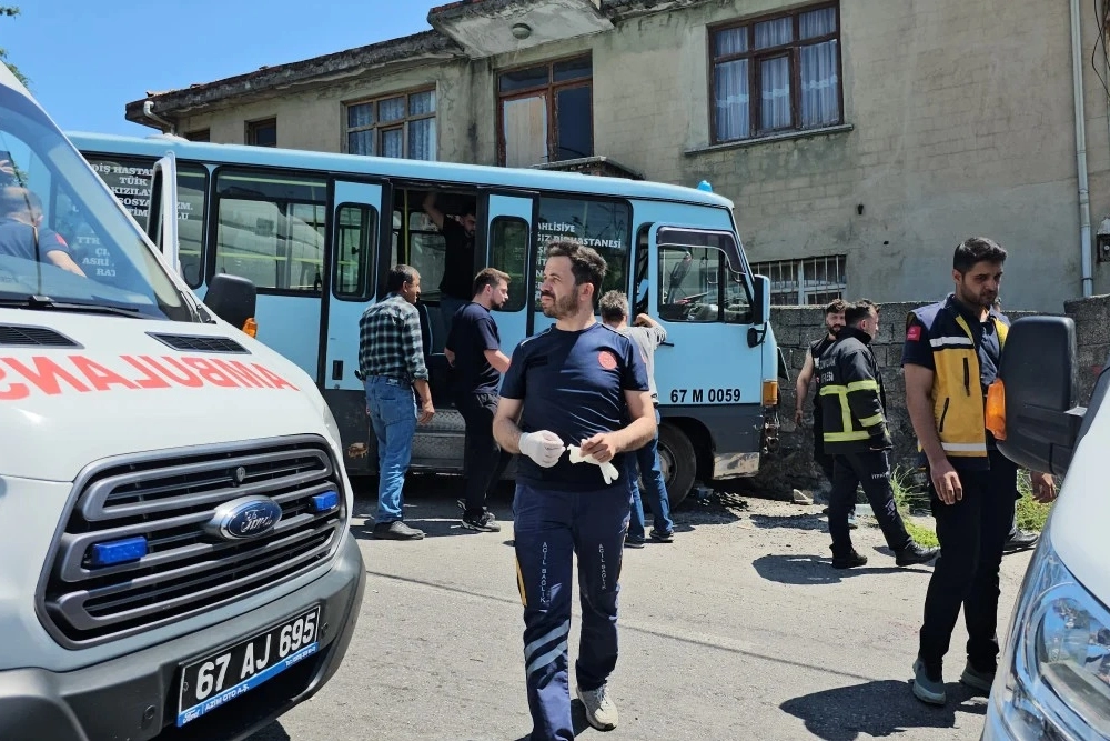 Zonguldak'ta kent merkezinde freni patlayan bir yolcu minibüsü, kontrolden çıkarak yol kenarındaki duvara çarptı.