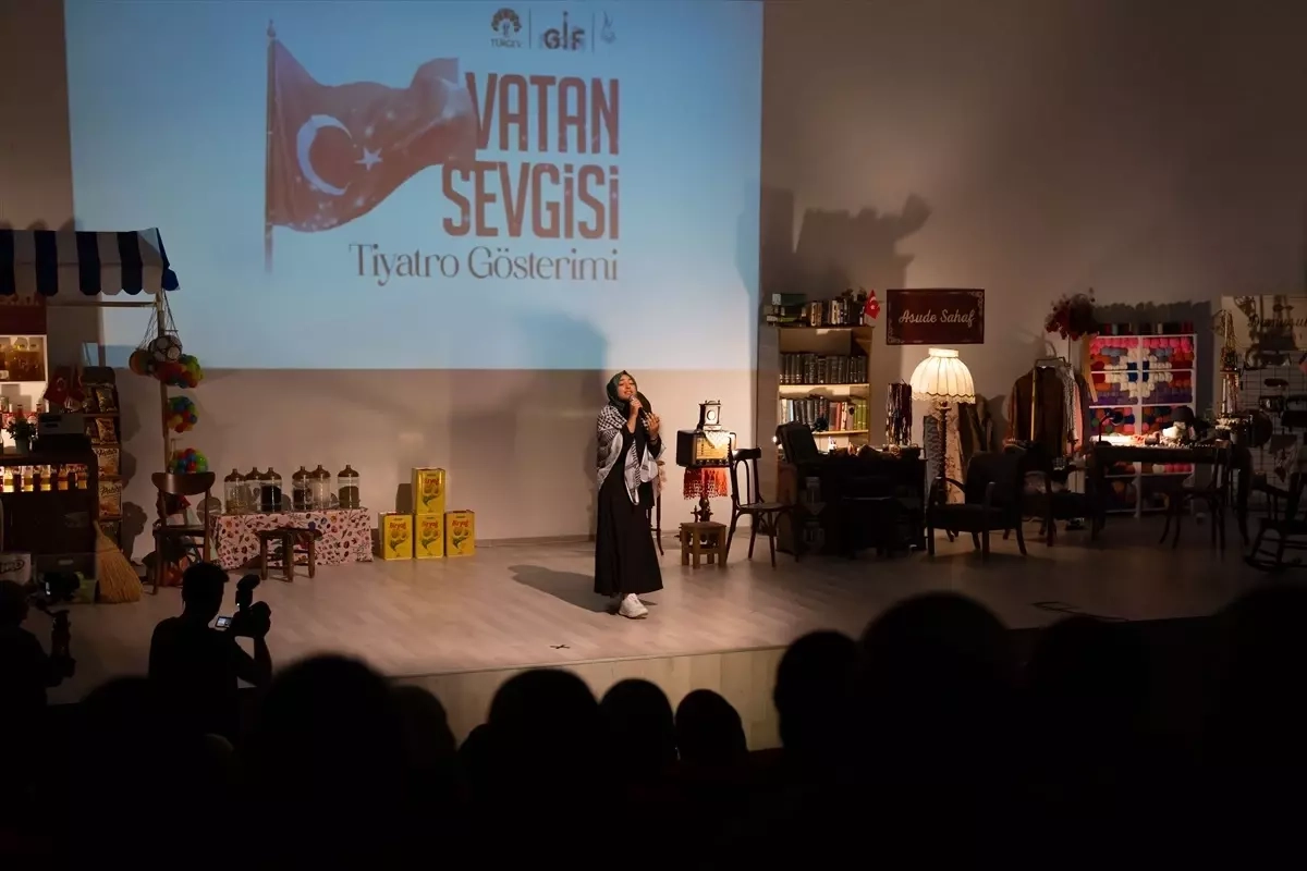 Türkiye Gençlik ve Eğitime Hizmet Vakfının (TÜRGEV) Güzel İşler Fabrikası'nca (GİF) hazırlanan "Vatan Sevgisi" tiyatro oyunu, Hümeyra Ökten Yükseköğretim Kız Yurdu'nda kadın izleyicilerle buluştu.GİF tarafından 15 Temmuz'un direniş ruhunu ve kadınların milli iradedeki rolünü genç kuşaklara aktarmayı amaçlayan ve kadın izleyicilere özel hazırlanan oyun, 15 Temmuz 2016 gecesi milletin direniş destanını, vatan sevgisi, milli irade ve toplumsal birlik temaları eşliğinde yorumluyor.Ayrıca tiyatro gösterisi, genç kuşaklarda, 15 Temmuz'un taşıdığı tarihsel ve toplumsal önemini, tarihsel olaylara kültür ve sanat aracılığıyla daha derinlikli yaklaşmasına katkı sağlamayı, milli birlik ve demokrasi bilincini sanatın evrensel diliyle güçlendirmeyi amaçlıyor.Oyunun merkezinde, 15 Temmuz gecesi sokağa çıkan, tankların karşısına yürüyen, dualarıyla ve cesaretleriyle direnişe katılan kadınlar yer alıyor.