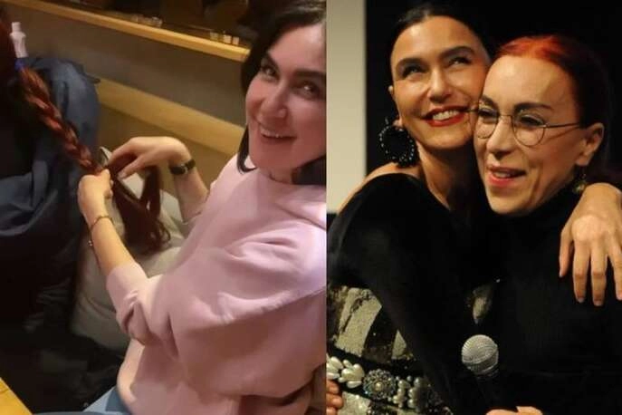 Anne-kız yemek yedikten sonra Şevval Sam, Leman Sam'ın saçlarını örmeye başladı.