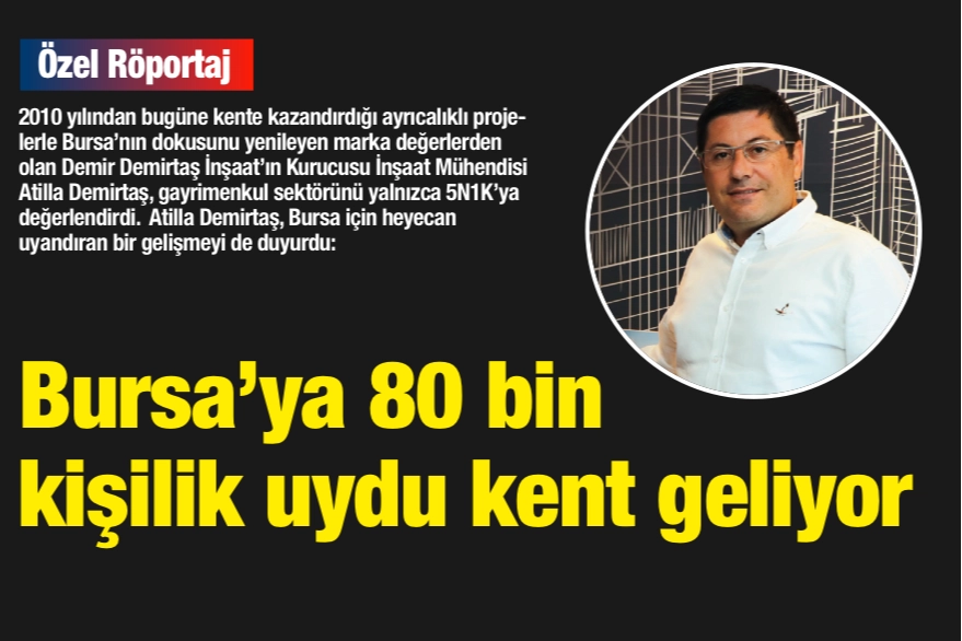 Atilla Demirtaş, sektör adına tüm dinamiklerde heyecan yaratan bir gelişmeyi de sadece 5N1K’ya açıkladı ve şöyle konuştu: “Sektörümüz 18 yıldır beklediği onayı en sonunda aldı. Kente değer katacak yeni planla 80 bin çevreci konut üretilirken şehrin önemli bir sorununa merhem olacak nitelikte yepyeni bir uydu kent geliyor”.