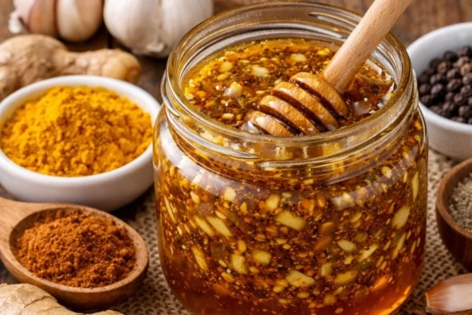 Bu 5 baharatı, 1 su bardağı balın içine dökün ve karıştırın. Yaklaşık 1 saat beklettikten sonra sabah akşam birer kaşık tüketin.