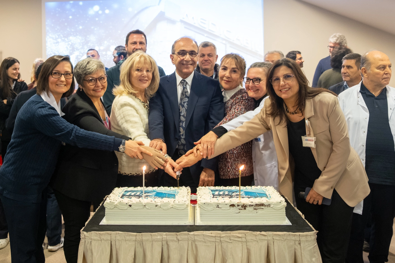 Medicabil Hastanesi’nin 16. Yıl kutlaması Hastane yönetimi, doktorları ve tüm çalışanlarının katılımlarıyla pasta kesilerek kutlandı.