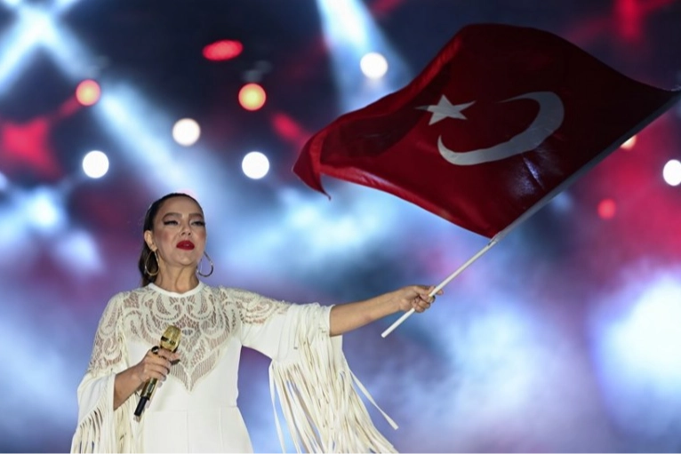 Sanatçı Ebru Gündeş, Ankara'da 29 Ekim Cumhuriyet Bayramı kutlamaları kapsamında Ankara Büyükşehir Belediyesinin ev sahipliğinde Atatürk Orman Çiftliği Doğal Yaşam Parkı'nda düzenlenen konserde sahne aldı.
