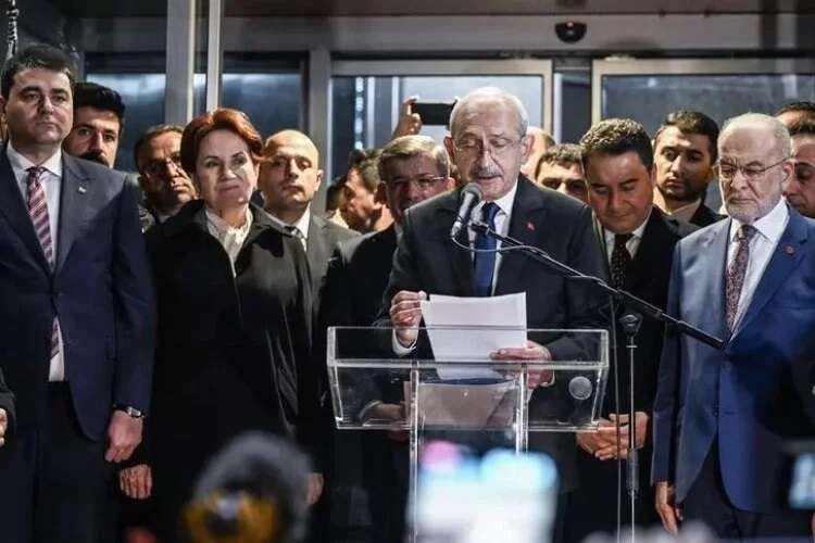Partililer her liderin gelişinde “birleşe birleşe kazanacağız”, “Hak Hukuk adalet”, Akşener ve Kılıçdaroğlu geldiğinde ise “Cumhurbaşkanı Kılıçdaroğlu” ve “Başbakan Akşener” sloganları attı.