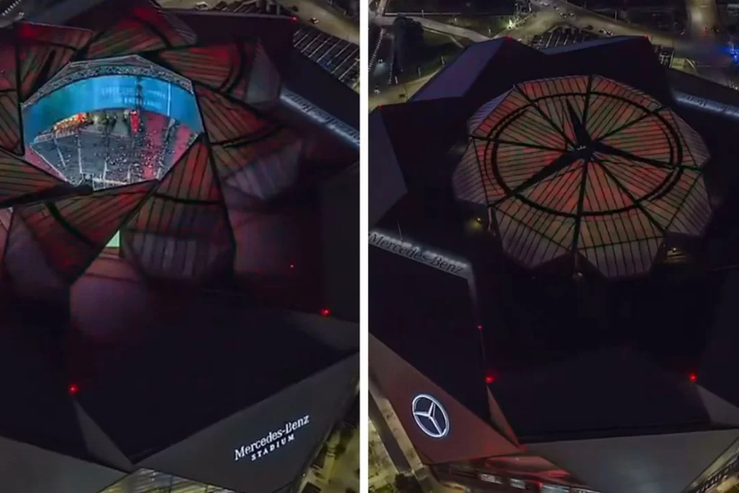 Yaklaşık 1,6 milyar dolara inşa edilen stadyumun yukarıdan çekilen görüntülerinde mimari detaylar ve simetrik yapı dikkat çekti. Özellikle çatısının açılır-kapanır tasarımı izleyenleri etkiledi.