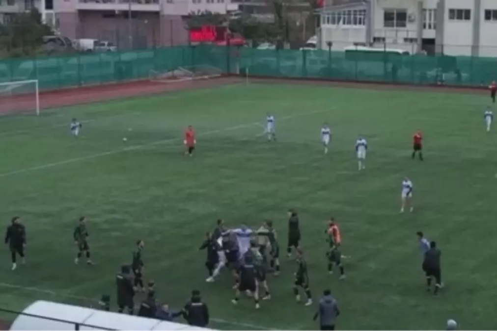 ARTVİN'de amatör lig maçında iki takımın futbolcuları arasında çıkan tekme ve yumruklu kavga kameralara yansıdı.