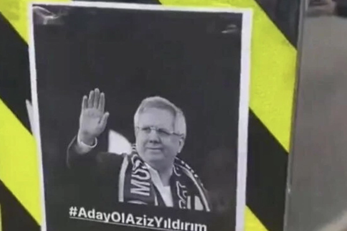 Stadyumun önünde bir levhaya Aziz Yıldırım'ın afişinin yapıştırıldığı görüldü. Kadıköy'deki sokakta "Aday ol Aziz Yıldırım" ifadelerinin yer aldığı görsel levhaya bastırıldı.