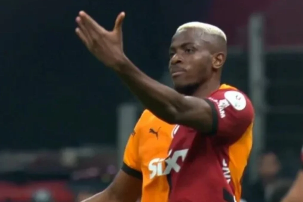 Galatasaray'ın yıldızı Victor Osimhen, Başakşehirli Ousseynou Ba'ya devre arası düdüğünün ardından 'gel' diyerek soyunma odası koridoruna çağırdı.