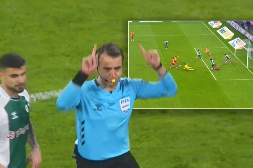VAR: Potansiyel ofsayt ihlali için sahada inceleme öneriyorum. Etkiyi göstereceğim. Oyuncunun ofsaytta olduğunu göstereceğim. Kale arkasından da etkisini göstereceğim.