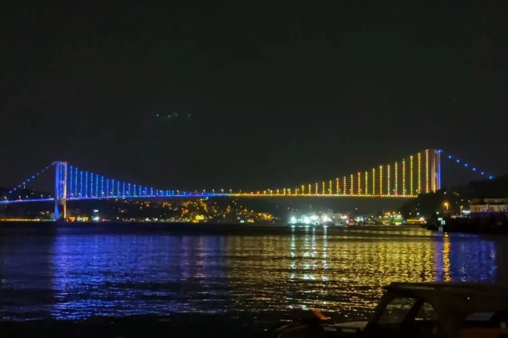 Dün akşam da 15 Temmuz Şehitler, Fatih Sultan Mehmet ve Yavuz Sultan Selim köprüleri de sarı-lacivertli renklere büründü.