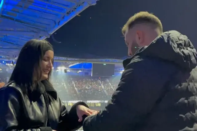 Kız arkadaşının 'Evet' yanıtı vermesiyle birlikte tribünde bulunan taraftarlar çifti alkışlarla tebrik etti. O anlar cep telefonlarıyla kaydedilirken, ortaya renkli ve duygusal görüntüler çıktı. 14 Şubat Sevgililer Günü'nde yaşanan sürpriz teklif, derbi gecesine damga vuran anlardan biri oldu.