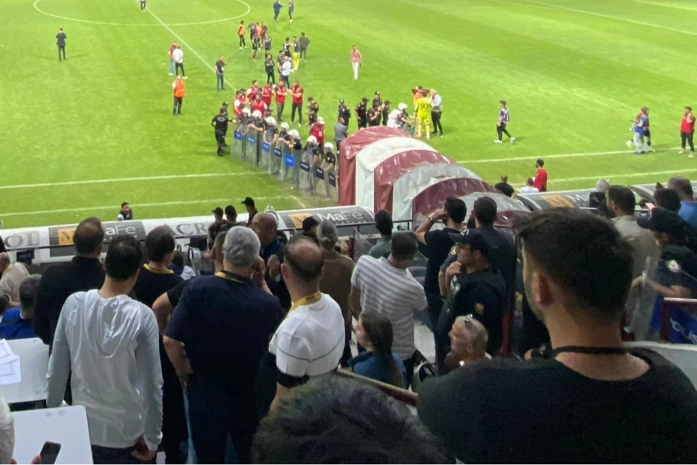 Karşılaşmanın 56. dakikasında yardımcı hakem Murat Temel'in kafasına tribünden atılan yabancı cisim isabet etti.Maçın hakemi Ümit Öztürk ile yardımcı hakemler Murat Temel ve Kadir Beyaz, soyunma odasına gitti.Bir süre sonra da futbolcular soyunma odalarına geçti, bu sırada tribünler boşaltıldı.