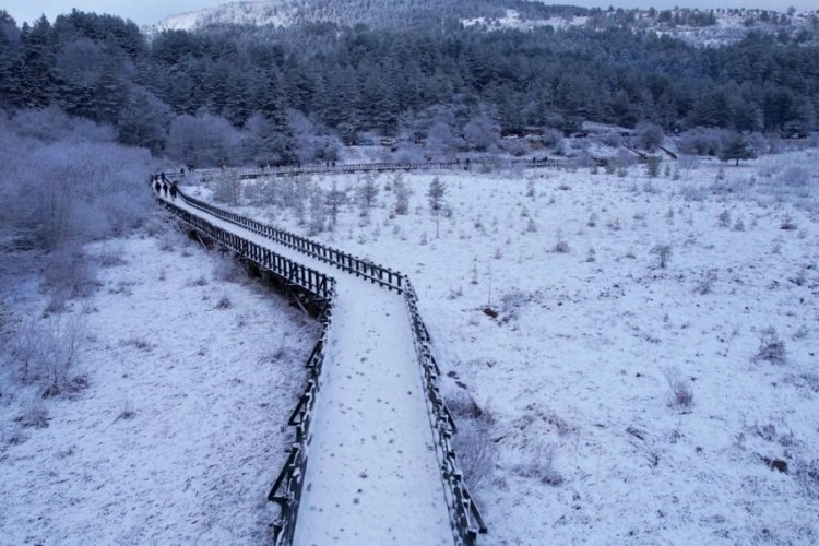Kar yağışının ardından Abant Gölü Milli Parkı ve çevresi beyaza büründü. Şehir dışından da çok sayıda ziyaretçinin geldiği göl, beyaz örtüyle birlikte kendisine hayran bıraktı. Eşsiz manzara havadan da görüntülendi.
