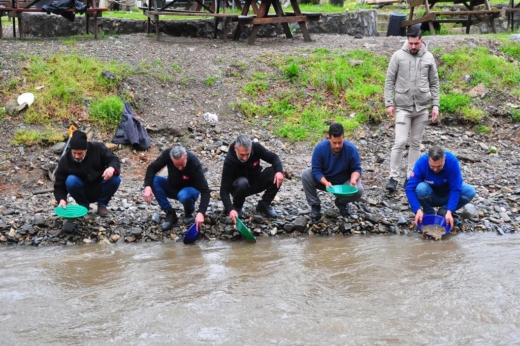 Küreklerle dere yatağındaki kumu çıkaran katılımcılar, 'pan' adı verilen eleme kaplarıyla altın taneciklerini ayıkladı. Zorlu hava koşullarına rağmen yapılan çalışmalarda birçok katılımcının altın bulduğu, etkinliğe katılanların yüzünün güldüğü görüldü.