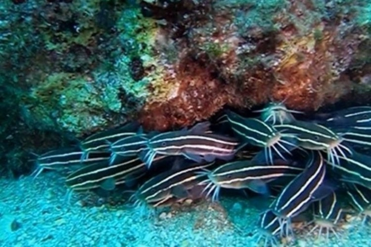 Dalış sırasından birçok balık türüyle karşılaştıklarını söyleyen Kürşat Bilgin, çizgili kedi balığını ilk defa gördüklerini söyledi. Bilgin, "Yaptığımız dalışlar sırasında birçok balık görüyoruz. Bunların çoğunluğunu biliyoruz ama bazen de ilk defa gördüğümüz balıklarla karşılaşıyoruz. Karşılaştığım yine bir balık türü var. Bu balığı daha önce Türkiye sularında hiç görmemiştim ama yurt dışındaki yapmış olduğum dalışlardan dolayı biliyordum. Muhtemelen bizim kara sularımıza gelerek üremeye başladılar diye düşünüyorum. Bu balığı 'çizgili kedi balığı' olarak adlandırabiliriz. Aslında ebat olarak küçük bir balık, sürü halinde yaşıyor, geceleri aktif olan istilacı bir tür ve zehirli dikenleri var. Kesinlikle dokunulmaması gerekiyor. Çok acı veren zehir salgılayabiliyor" dedi.