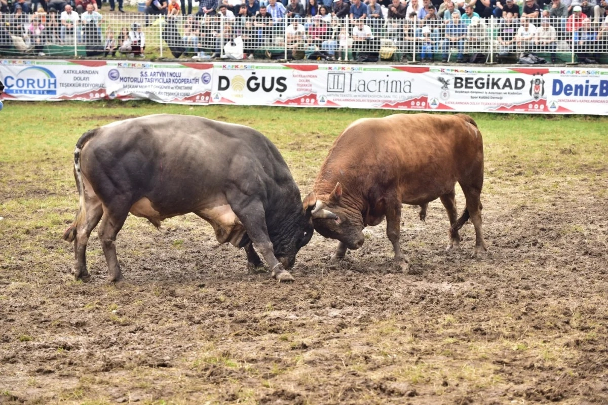 Artvin'de bu yıl 43'üncüsü düzenlenen ve 4 gün sürecek olan Kafkasör Kültür Sanat ve Turizm Festivali'nin 3'üncü gününde boğa güreşi heyecanı devam ediyor.