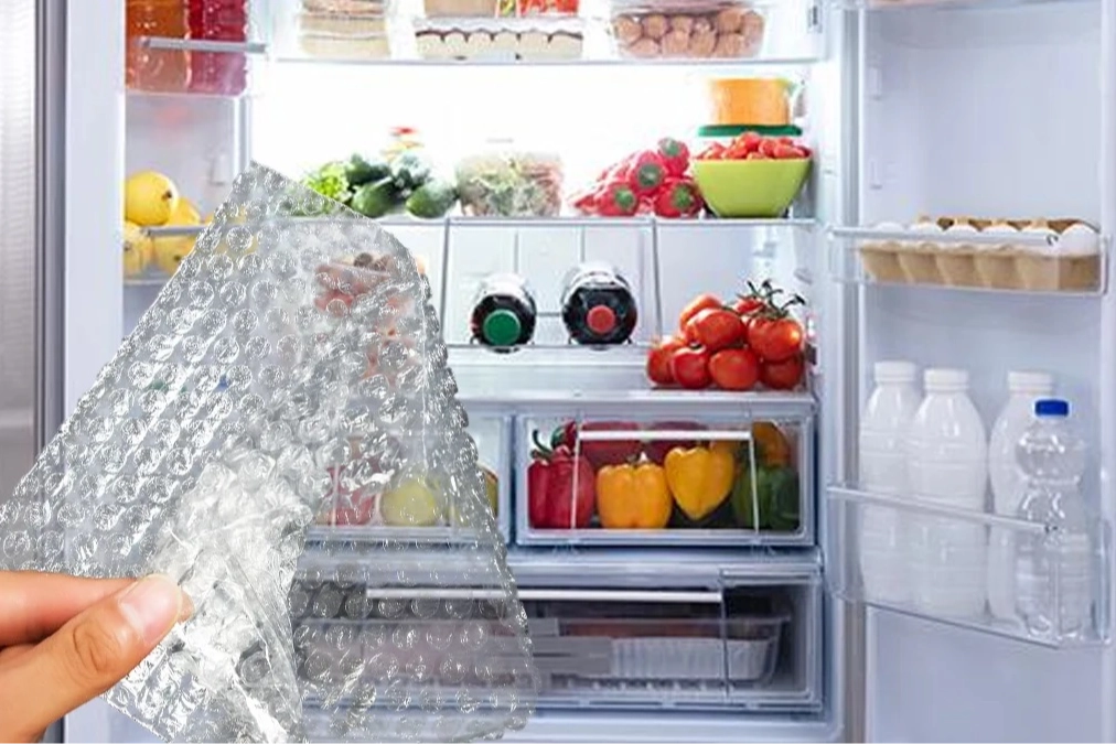 Yalnızca tek bir etki değil birçok etkiyi aynı anda sağlayan baloncuklu naylon bakın buzdolabına yerleştirildiğinde nasıl etkiler sağlıyormuş.