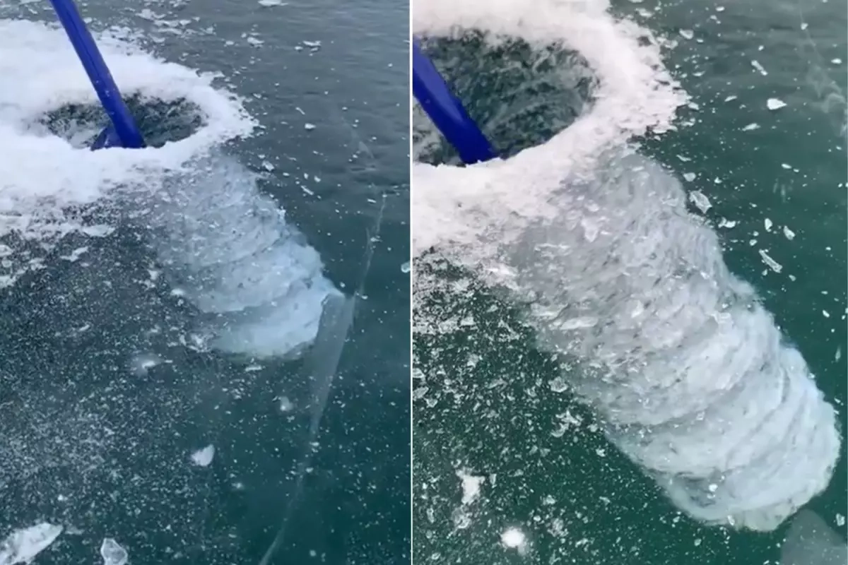 Dünyanın en eski ve en derin tatlı su gölü olan Baykal Gölü, dondurucu Sibirya soğuklarıyla birlikte eşsiz bir doğa olayına ev sahipliği yapıyor. Bölgede çekilen ve kısa sürede viral olan görüntülerde, bir buz burgusuyla (drilling) gölün dondurucu yüzeyinde delik açılmaya çalışıldığı görülüyor.