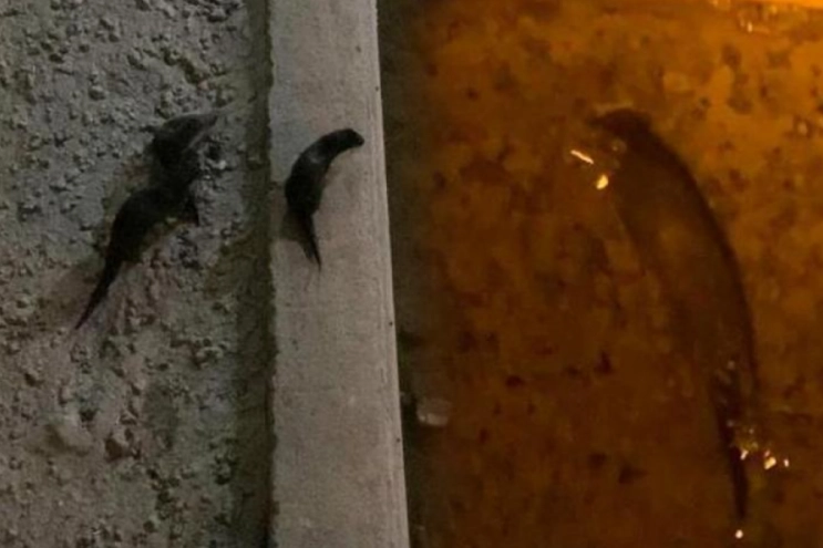 Zaman zaman ayıların da görüntülendiği Harşit Çayında bugün akşam saatlerinde kentin tam göbeğinde çay kenarında suda oynadığı ve balık avladığı görülen 3 su samuru bir süre sonra sudan çıkarak gözden kayboldu.
