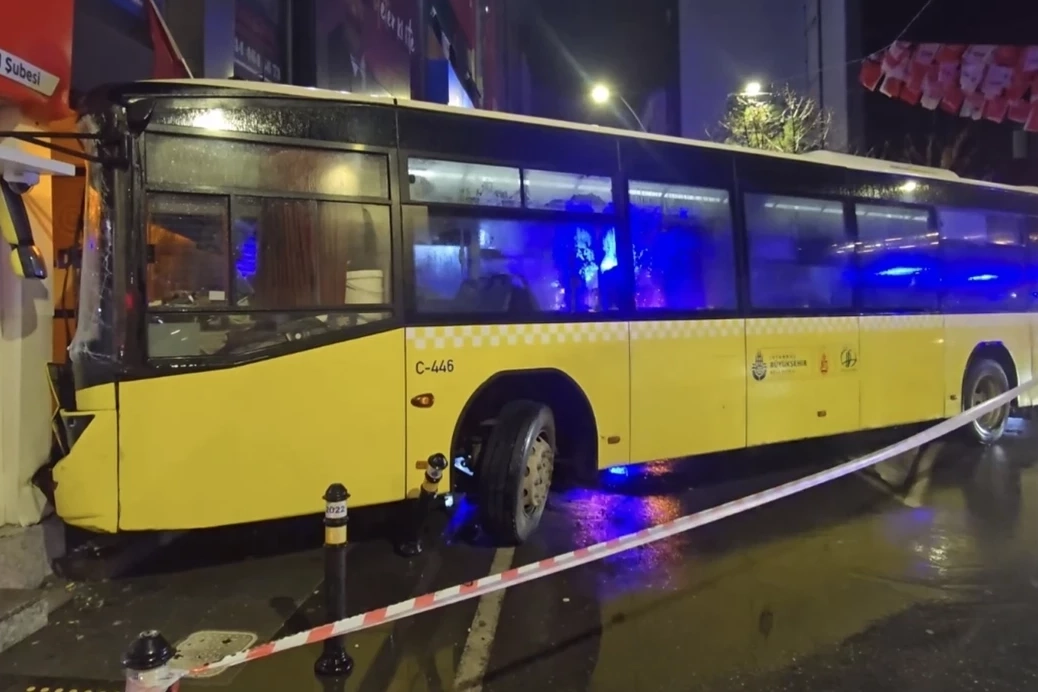 Kartal'da seyir halindeki İETT otobüsü, sürücüsünün direksiyon hakimiyetini kaybetmesi sonucu caddedeki binanın duvarına çarptı.