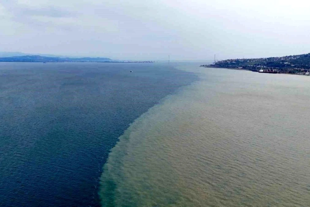 Edinilen bilgiye göre, son günlerde ilçenin yüksek kesimlerinde etkisini gösteren yağış, bölgedeki derelerin debisini artırdı. Hereke'yi geçerek İzmit Körfezi'ne dökülen dere, taşıdığı çamur sebebiyle adeta kahverengi aktı. Derenin getirdiği çamurlu suların denizle buluştuğu noktada İzmit Körfezi'nin bir bölümü iki farklı renge büründü. Mavinin ve kahverenginin keskin bir çizgiyle birbirinden ayrıldığı ilginç anlar, havadan da görüntülendi. Sahil şeridindeki vatandaşlar da oluşan bu doğal manzarayı cep telefonu kameralarıyla kaydetti.