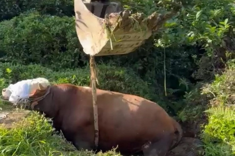 Olay, Rize merkeze bağlı Erenköy köyünde meydana geldi. Kurban bayramı için alınan boğa ahıra getirilirken bağını kopararak kaçmaya başladı. Kilometrelerce koşan boğa çay bahçesinin içerisine girerek arazide bulunan çukurun içerisine düştü. Boğanın mahsur kaldığını gören sahipleri hemen yardım alabilmek için durumu Rize İl Özel İdaresi ekiplerine bildirdi. Olay yerine gelen ekipler boğayı paletler yardımı ile iş makinesine bağladı ve bulunduğu yerden çıkardı. Boğanın çıkarılma anları ise cep telefonu kamerası ile anbean kaydedildi.