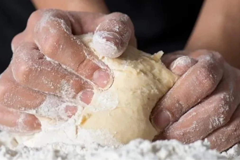 Ardından hamuru streç filmle kaplayıp buzdolabında bir gece dinlendirin. Sabahın ilk ışıklarıyla birlikte hamuru tezgaha alıp bezelere ayırın ve 10 dakika kadar dinlendirin.