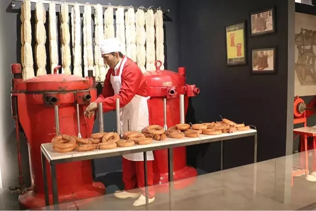 Müzede sergilenen ürünler arasında 100 yıllık geçmişe dayanan ahşaptan kıyma makinesi, bıçaklar, masatlar, sucuk dolum makineleri yer alıyor.