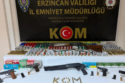 İl Emniyet Müdürlüğümüz Kaçakçılık ve Organize Suçlarla Mücadele Şube Müdürlüğü ve Refahiye İlçe Emniyet Müdürlüğü ekiplerince, Refahiye ilçesinde 6136 SKM suçunun önlenmesi, faillerin tespiti, şüphelilerin yakalanması ve suç unsurlarının ele geçirilmesi amacı ile yapılan teknik ve fiziki takip çalışmalarının sonucunda N.T, N.K. ve D.Y. isimli şahıslara ait toplam 7 adreste yapılan aramada; 4 adet tabanca ve tabancalara ait 5 adet şarjör, 2 adet pompalı tüfek, 322 adet kartuş, farklı marka ve ebatlarda toplamda 794 adet fişek ele geçirilerek el konulmuştur.
