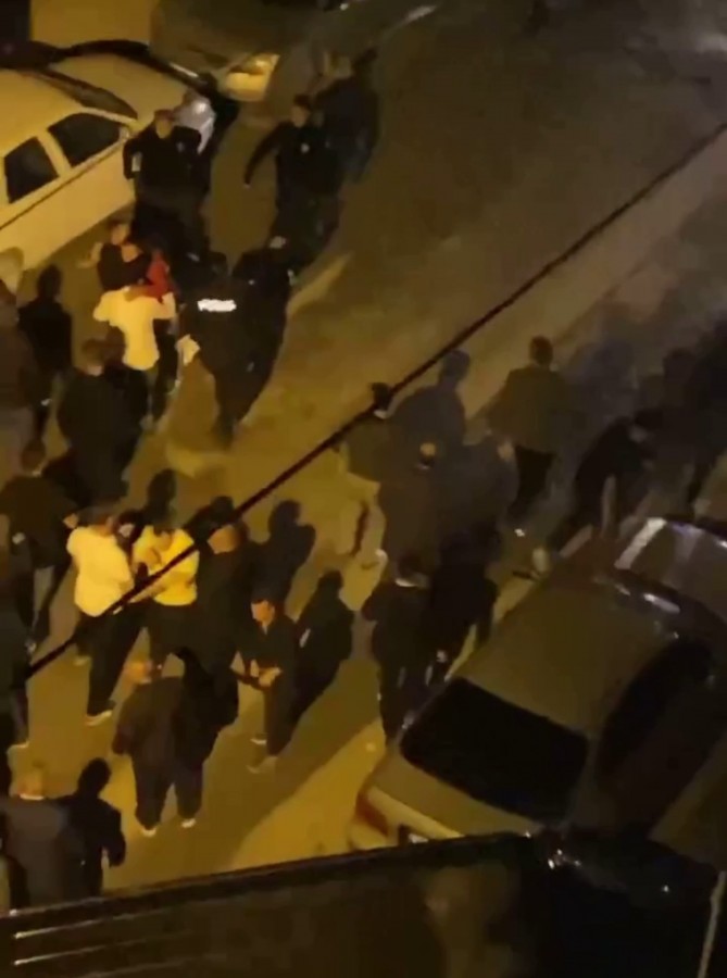 Tekme ve yumrukların havada uçuştuğu kavgada ortalık adeta savaş alanına dönerken durumun haber verilmesi üzerine bölgeye polis ekipleri sevk edildi. Ekiplerin zorlukla müdahalede bulunduğu kavga son bulurken, o anlar cep telefonu kamerasına yansıdı. Olaya ilişkin inceleme başlatıldı.