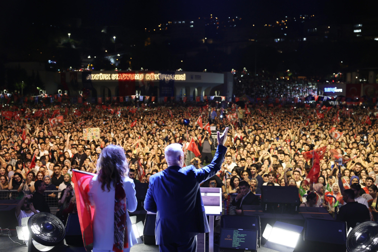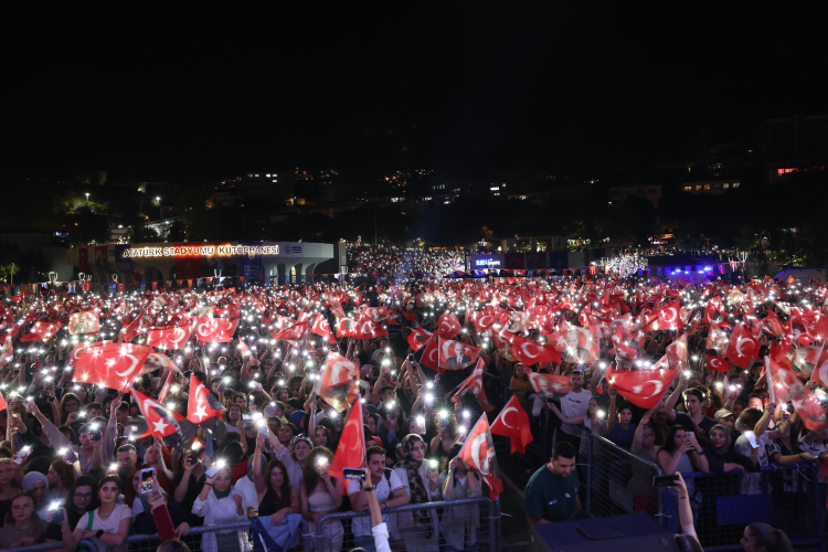 On binlerce Bursalının katılımıyla gerçekleştirilen fener alayı, Kültürpark Atatürk Stadyumu Meydanı'nda son buldu. Alanı hınca hınç dolduran on binlerce kişi, ellerindeki Türk Bayrakları ve İzmir Marşı’yla birlikte coşkuya ortak oldu. Saygı duruşu ve İstiklal Marşı’nın okunmasının ardından eşi Seden Bozbey ile birlikte sahneye çıkan Bursa Büyükşehir Belediye Başkanı Mustafa Bozbey, Bursalıları selamladı.