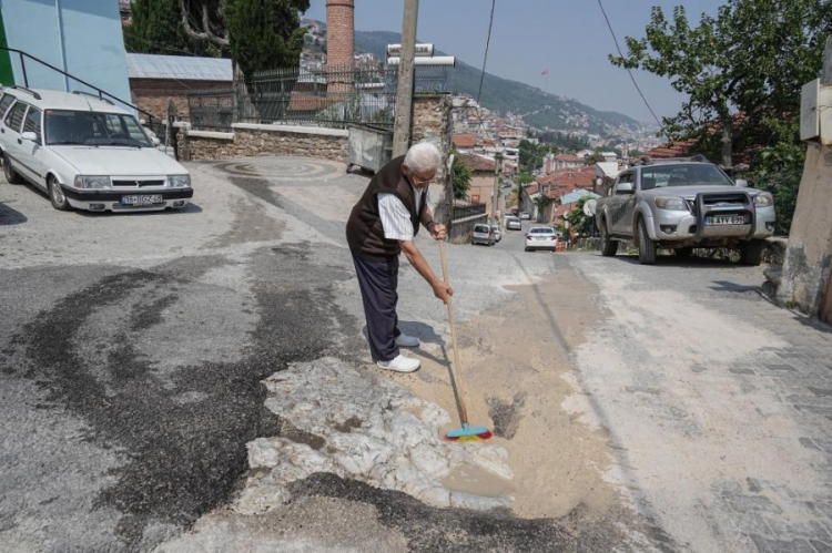 Çukur içerisinde biriken toz ve yaprakları titizlikle süpüren Alidoğdu, bunu kendisine bir vazife olarak görüyor.