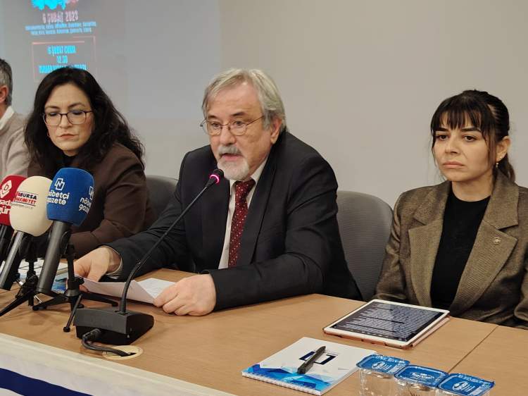 6 Şubat 2023’te Kahramanmaraş merkezli yaşadığımız depremlerin 3. yılında DİSK, KESK, TMMOB ve TTB ortak basın açıklaması düzenledi. Açıklamayı TMMOB Bursa İl Koordinasyon Kurulu Sekreteri Murat Korkut okudu.