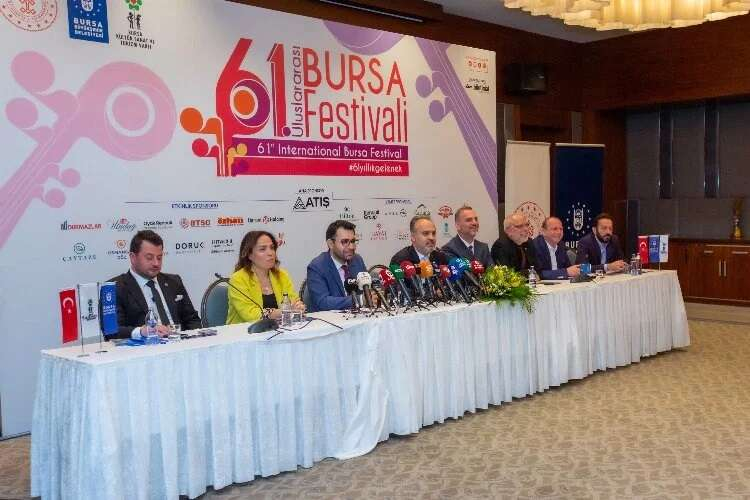 Bursa Büyükşehir Belediyesi adına Bursa Kültür Sanat ve Turizm Vakfı (BKSTV) tarafından düzenlenen, Kültür ve Turizm Bakanlığı tarafından da desteklenen 61’inci ‘Uluslararası Bursa Festivali’nin tanıtım toplantısı, Hilton Otel’de yapıldı. Festivalin tanıtım toplantısına Bursa Büyükşehir Belediye Başkanı Alinur Aktaş, BKSTV Başkanı Sadi Etkeser, BKSTV Yönetim Kurulu, sponsor firmaların temsilcileri ve basın mensupları katıldı.