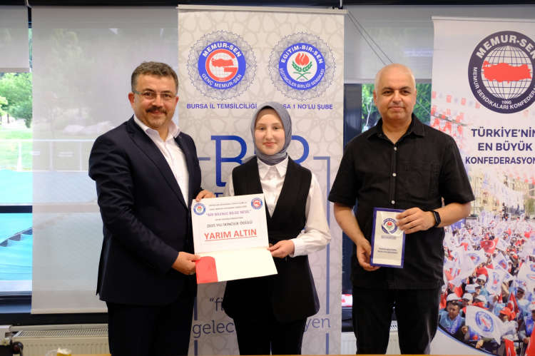Gençlerin düşünce dünyalarını geliştirmeyi, okuma alışkanlığı kazandırmayı ve nitelikli bir gelecek inşa etmelerine katkı sunmayı amaçlayan yarışma, bu yıl da yoğun katılımla tamamlandı. Cengiz Aytmatov’a ait “Toprak Ana” ve Nurullah Genç’e ait “Başarı Bedel İster” adlı eserleri konu edinen kompozisyon yarışmasında dereceye giren öğrenciler, başarılarını düzenlenen törenle taçlandırdı. Birincilere tam altın, ikincilere yarım altın, üçüncülere ise çeyrek altın ödülünün verildiği törende, öğrenciler kadar danışman öğretmenler de takdir topladı. Programa, Eğitim-Bir-Sen Genel Sekreteri Talat Yavuz ve Bursa İl Milli Eğitim Müdürü Dr. Ahmet Alireisoğlu, Memur-Sen Bursa İl Temsilcisi, Eğitim-Bir-Sen Bursa 1 Nolu Şube Başkanı Ramazan Acar, Genç-Memur-Sen Bursa İl Temsilcisi Maksut Ali Atamer ile Eğitim-Bir-Sen Bursa 1 Nolu Şube Yönetim Kurulu Üyeleri, İlçe Yönetimleri, İcra Kurulları ile öğretmenler ve öğrenciler katıldı.