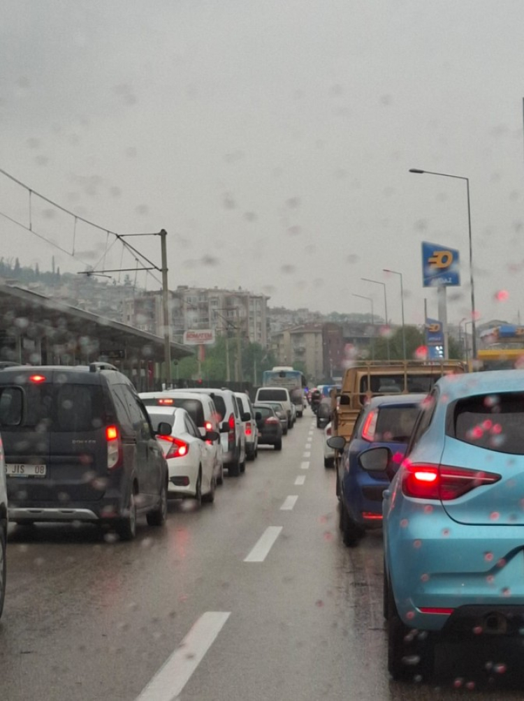 Bursa'da sabah trafiği azalmadan devam ediyor. Sabah işe gidiş ve akşam iş çıkış saatlerinde gözle görülür seviyede artan araç trafiği, yağmurun etkili olması ile daha da arttı.