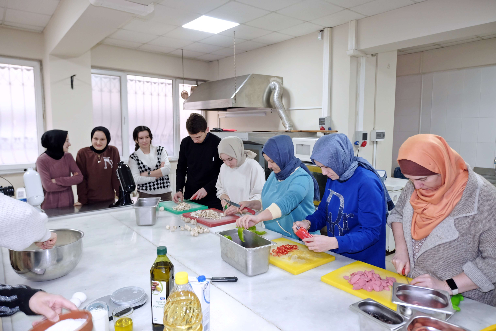 BUSMEK'in yarıyıl tatilinde yetişkinlere özel düzenlendiği atölye çalışmaları vatandaşlardan büyük ilgi gördü. Atölyelere katılan amatör şefler, mutfaktaki hünerlerini gösterdi.