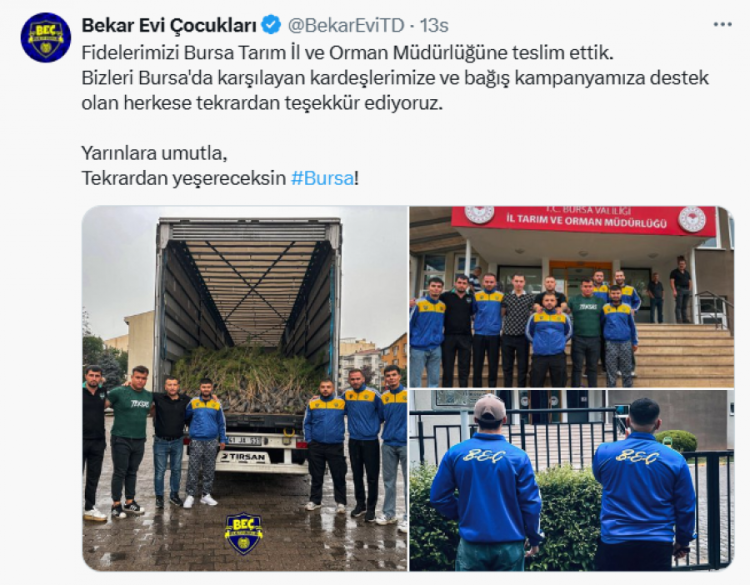 Ankaragücü Bekar Evi Çocukları, yeniden yeşillendirme çalışmaları kapsamı altında Bursa'ya tam 10 bin fidan gönderdi!