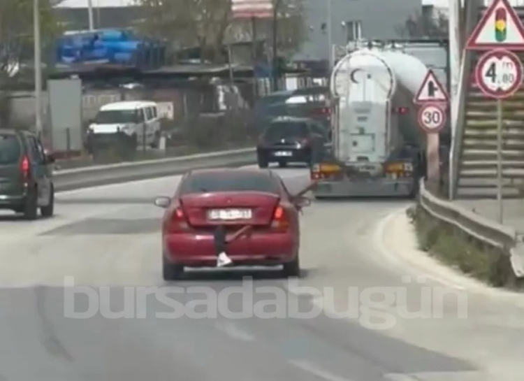 Bursa'da ilginç görüntü bu kez Yıldırım ilçesinden geldi. Şirinevler Mahallesi 11 Eylül Bulvarı üzerinde ilerleyen bir otomobilin bagajından dışarı sarkan insan bacağı, trafikteki sürücülerin ve çevredeki vatandaşların dikkatini çekti.