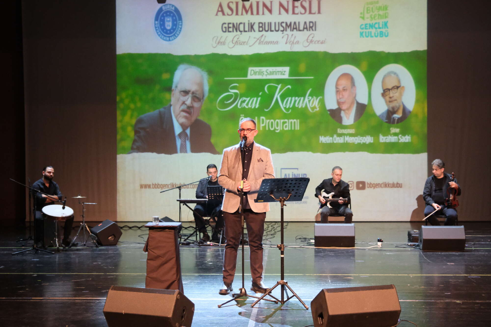 Bursa Büyükşehir Belediyesi’nin periyodik olarak düzenlediği “Asım’ın Nesli Gençlik Buluşmaları” projesi kapsamında 7 Güzel Adam’a Vefa Gecesi programının bu ayki konusu merhum ‘Diriliş Şairi’ Sezai Karakoç oldu. Şair İbrahim Sadri ve Metin Önal Mengüşoğlu’nun üstadın fikirlerini ve şiirlerini konuştuğu etkinliğe Büyükşehir Belediyesi Başkanvekili Fethi Yıldız ve çok sayıda genç katıldı.