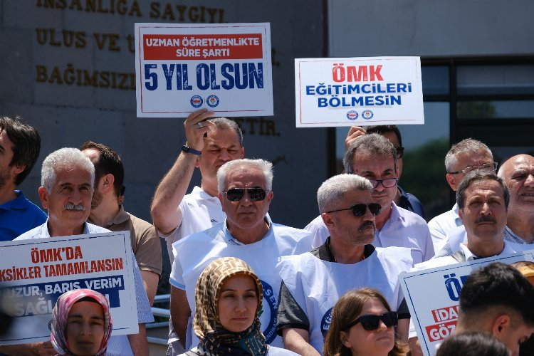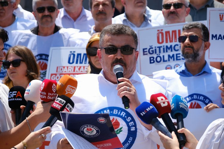 Eğitim-Bir-Sen, Milli Eğitim Bakanlığı’nın hazırladığı yeni Öğretmenlik Meslek Kanunu (ÖMK) ve uzman öğretmenlik kararını 81 ilde protesto etti. Bursa’da İl Milli Eğitim Müdürlüğü önünde basın açıklaması gerçekleştiren Memur-Sen Bursa İl Temsilcisi, Eğitim-Bir-Sen Bursa 1 Nolu Şube Başkanı Ramazan Acar, “Bugün buraya, yüksek sesle; “Öğretmenlik meslek kanunu, ayrıştırıcı değil kapsayıcı olmalı; Eğitimcileri bölmemeli, haklar yarım kalmamalı.” demek için toplanmış bulunuyoruz. Uzun yıllar ihtiyaç haline gelen ve yıllarca talep ettiğimiz Öğretmenlik Meslek Kanunu, nihayet bundan iki yıl önce çıkarılmıştı. Ancak ne yazık ki çıkarılan kanun, bütün uyarılarımıza rağmen ihtiyacı karşılayacak şekilde düzenlenmemiş, daha ilk uygulamasında yetersizliği ortaya çıkmıştı. Kapsamı dar tutulmuş; şube müdürlerini, İlçe Milli Eğitim Müdürlerini, İl Milli Eğitim Müdür Yardımcılarını, bakanlık ve eğitim müfettişlerini, şahsa bağlı uzmanları ve araştırmacıları kapsam dışı bırakan mevcut kanunun bir kısım maddeleri ise Anayasa Mahkemesi tarafından iptal edilmişti. Bu günlerde yetersizliği açık ve iptal edilen maddeleri ile uygulama şansı kalmayan kanunun yeniden düzenlenmesi ve bu sefer kapsamı geniş, şiddete yaptırım içeren ve eğitimcilerin tamamını memnun edecek bir kanun tasarısı, TBMM gündemine gelsin istiyoruz.” dedi.