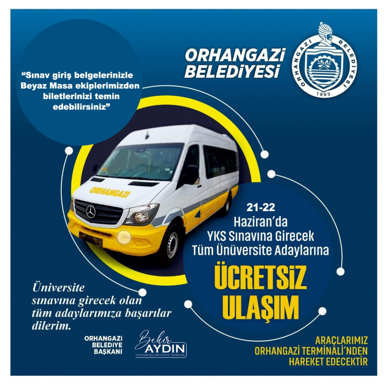 Belediye, sınava girecek öğrenciler ve velileri için ücretsiz ulaşım desteği sağlarken, Orhangazi Belediye Başkanı Bekir Aydın da bir mesaj yayımlayarak gençlere başarı dileklerinde bulundu. Öğrencileri Bursa, Gemlik ve Yalova sınav noktalarına götürecek araçlar sınav sabahı Orhangazi Terminalinden hareket edecek.