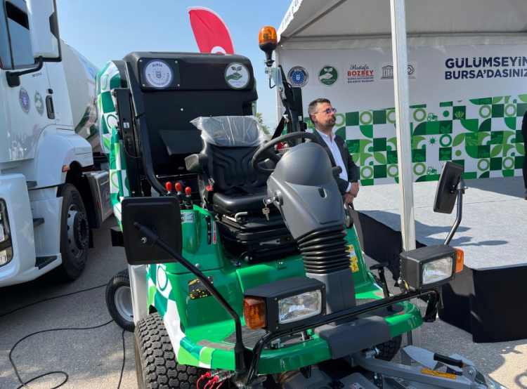 Bursa Büyükşehir Belediyesi iştiraklerinden Tarım Peyzaj A.Ş.'nin hizmet kalitesini artırmak için yatırımlarını sürdürüyor. Başkan Bozbey, "Türkiye'de ilk kez bizim sahip olduğumuz, Tarım Peyzaj A.Ş.'nin filomuza kattığı bu değerli araçlar yaklaşık 6 tane çim biçme aracının yapmış olduğu işi tek başına yapan araçlardır ve çok donanıma sahip ve 10 farklı aracın yaptığı işi de yapar düzeyde olan araçlardır." dedi.