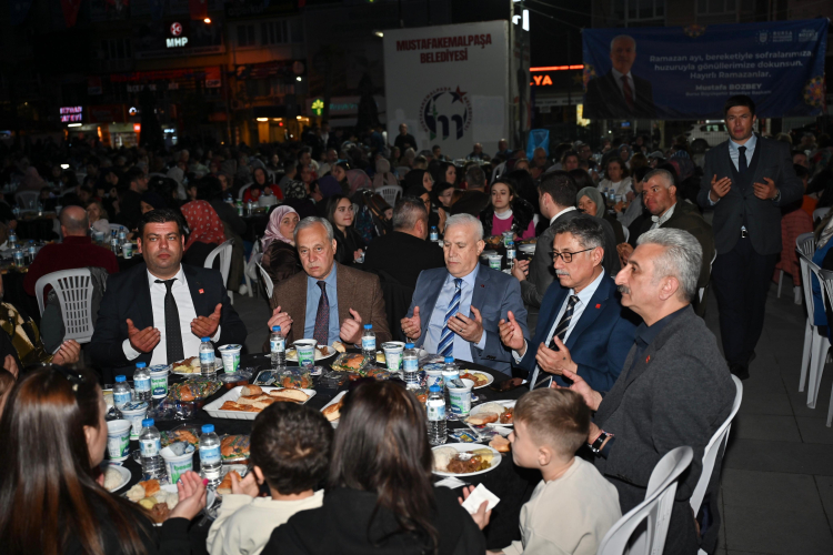 Bursa Büyükşehir Belediye Başkanı Mustafa Bozbey, Ramazan ayının dayanışma ve paylaşma ruhunu kentin 17 ilçesinde tüm vatandaşlarla paylaştıklarını söyledi. Her akşam farklı bir ilçede Bursalılarla buluştuklarını belirten Başkan Mustafa Bozbey, iftara yetişemeyenler için kentin birçok farklı noktasında iftariyelik dağıttıklarını, 3 farklı noktada da her gün binlerce vatandaşı iftar sofralarında buluşturduklarını dile getirdi. Başvuruda bulunan ihtiyaç sahiplerine de destek olduklarını anlatan Başkan Bozbey, “Büyükşehir Belediyesi her zaman yanınızda. Mustafakemalpaşa’da da birçok hizmete imza attık. İlçenin öncelikli ihtiyaçlarını belirleyerek tek tek yerine getirmeye başladık. Stadyumla başladık, altyapı, kanalizasyon ve içme suyu çalışmalarıyla devam ettik. Çiftçilerin tohum, fide ve gübre ihtiyaçlarını karşılarken, Ovaazatlı'da kurduğumuz fabrikayla boru üretimi yapıyoruz. Yaklaşık 4 milyon metre civarında üretim gerçekleştirdik. Bunu çevreci bir anlayışla yapıyoruz. Geri dönüşümden elde edilen malzemelerle hem çevreyi koruyoruz hem de üretim yapıyoruz. Muhtarlarımızın taleplerini önemsiyoruz. Tek amacımız, Bursalıların gülümsemesidir” dedi.