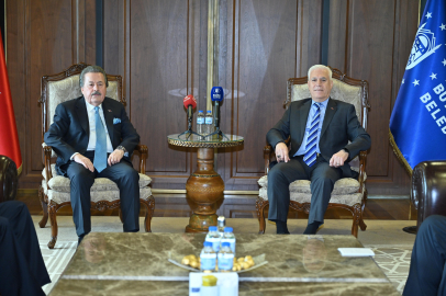 Bursa Büyükşehir Belediye Başkanı Mustafa Bozbey, Devlet eski Bakanı Cavit Çağlar’ı ve Olay Medya yöneticilerini makamında ağırladı.
